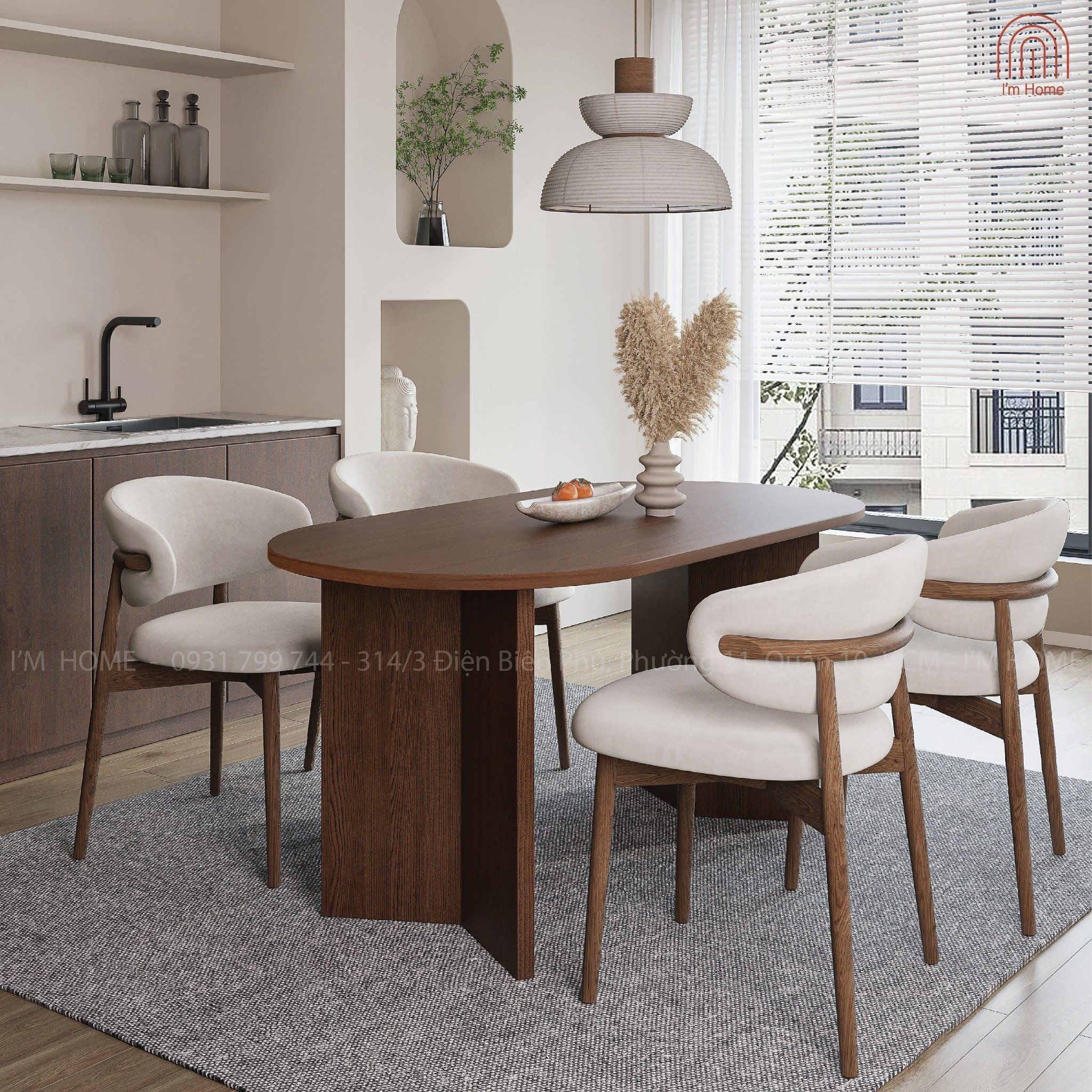 Ghế ăn thiết kế tựa cong ôm lưng, khung gỗ tần bì tự nhiên kết hợp đệm ngồi bọc vải bố mềm cao cấp màu kem – êm ái, sạch sẽ và dễ bảo quản.