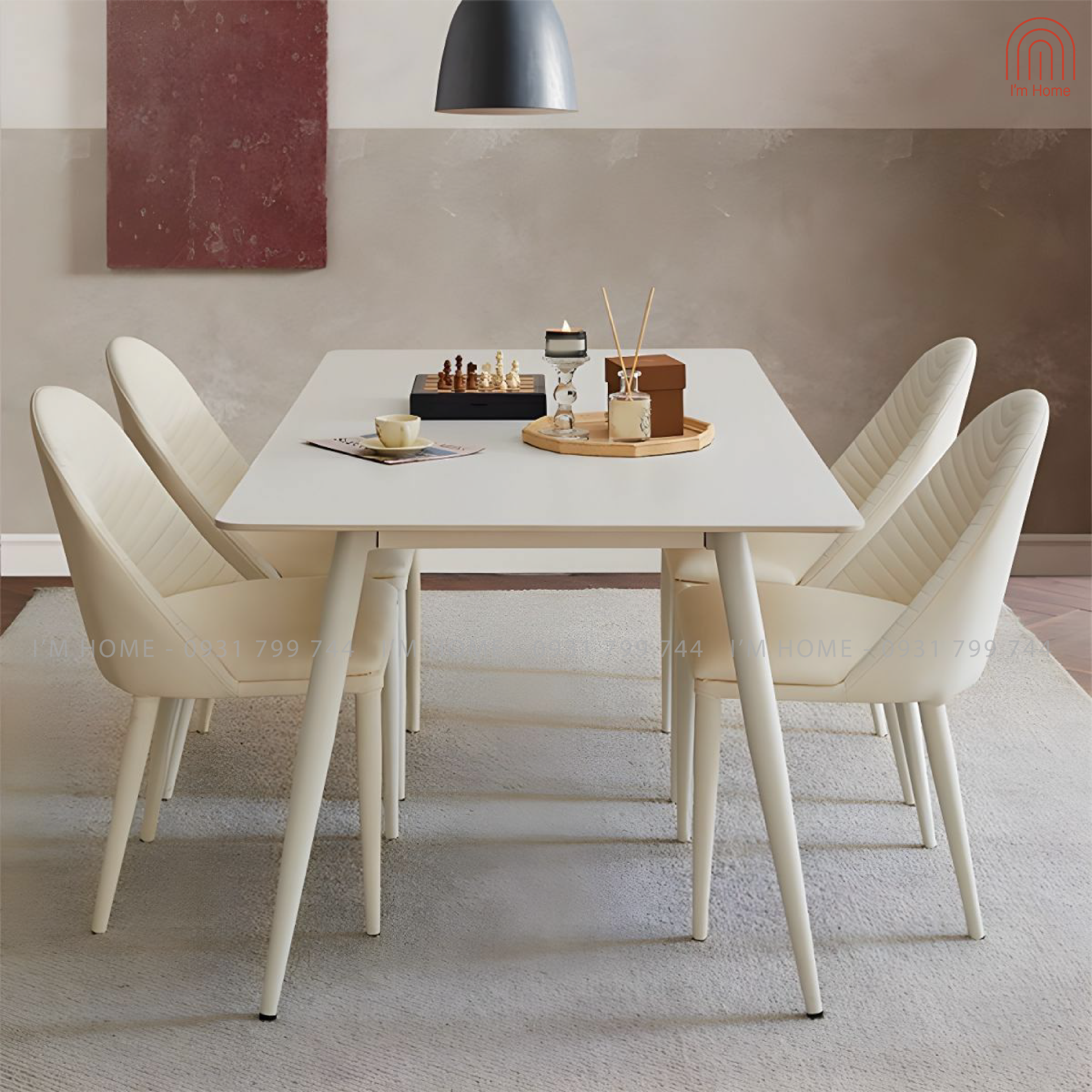 Thiết kế bàn chữ nhật với đường nét bo tròn mềm mại, mang lại cảm giác gần gũi, ấm cúng cho bữa ăn gia đình.