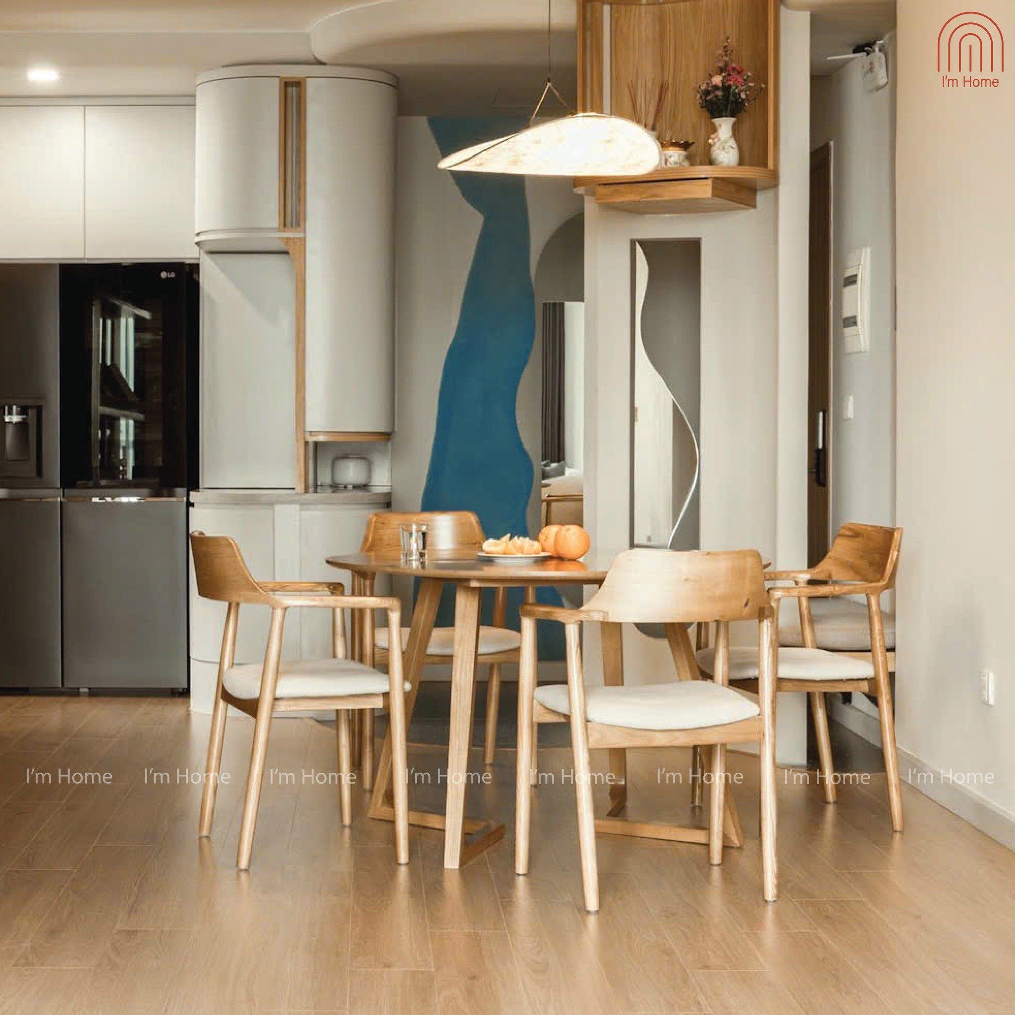Thiết kế mặt bàn tròn bo mềm mại, tạo cảm giác gần gũi, hài hòa – lý tưởng cho các không gian ăn uống hoặc tiếp khách nhỏ gọn