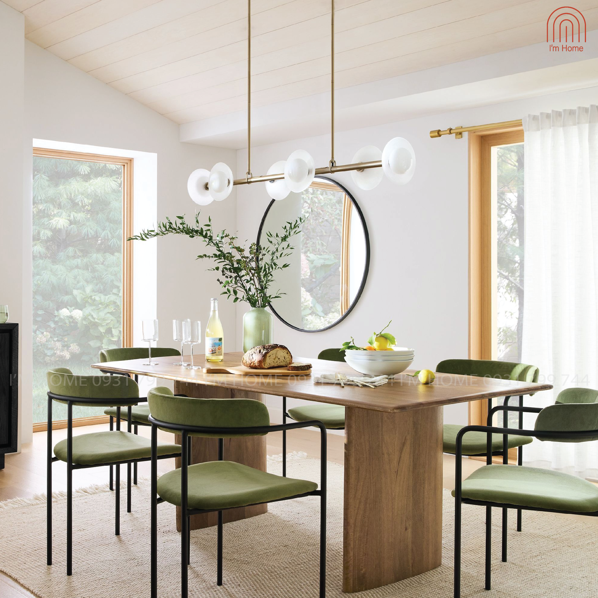Dáng bàn chữ nhật bầu kết hợp cùng chân bàn bo cong tạo điểm nhấn độc đáo