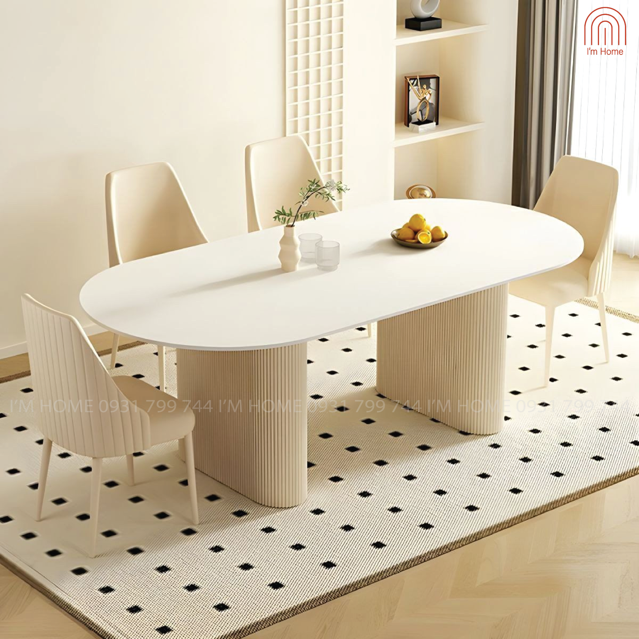 Thiết kế bàn oval với đường nét bo tròn mềm mại, mang lại cảm giác gần gũi, ấm cúng cho bữa ăn gia đình.