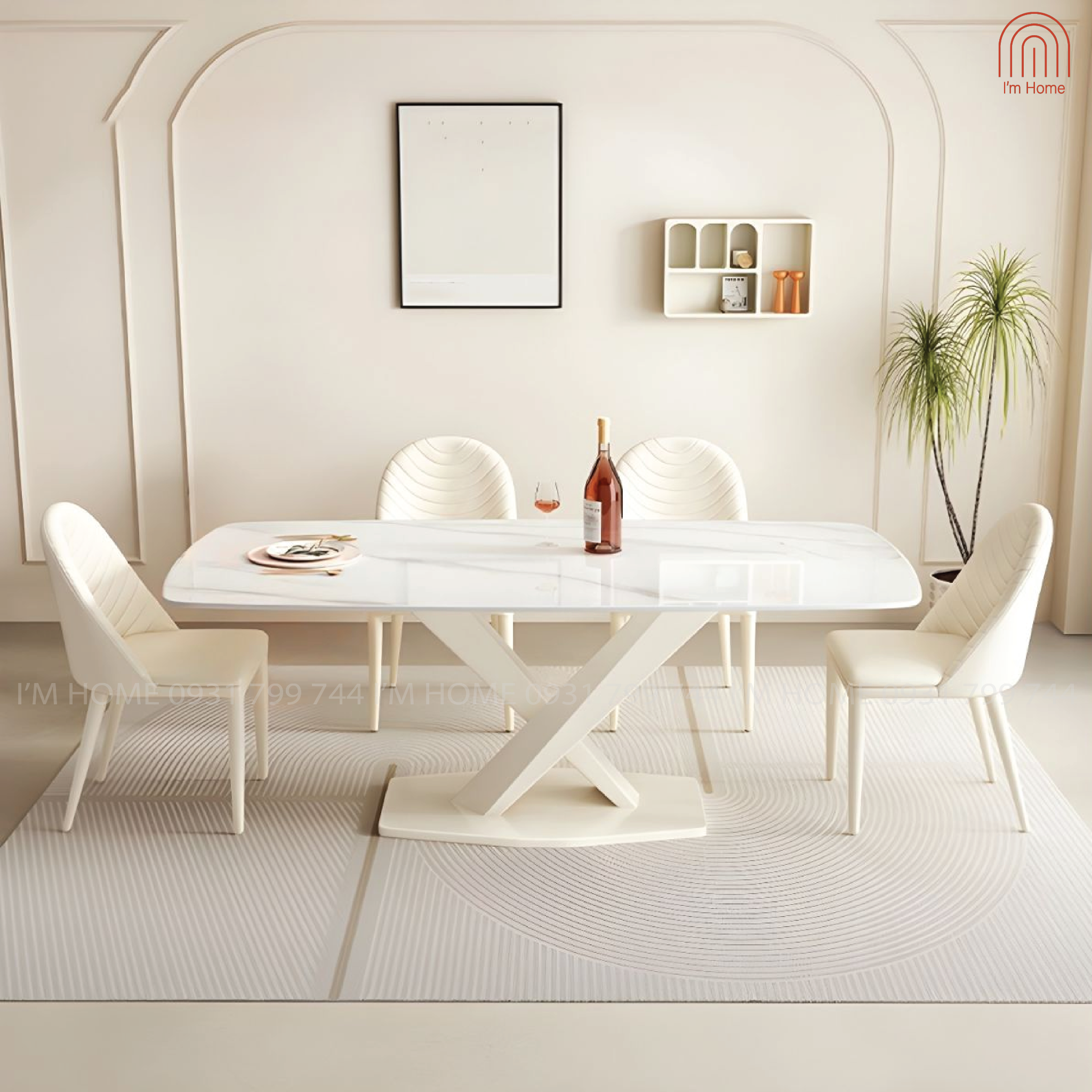 Mặt bàn sử dụng chất liệu đá Ceramic, giúp tăng thêm vẻ sang trọng và thanh lịch