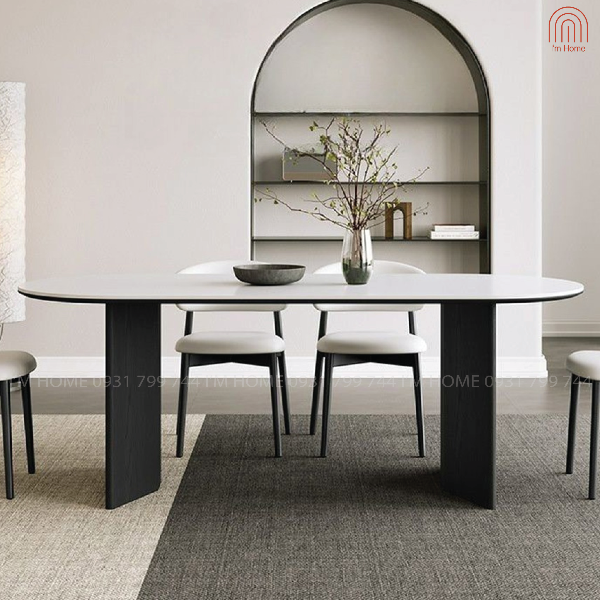 Thiết kế mặt bàn Oval bo tròn kết hợp cùng hai chân bàn hình chữ V, tạo điểm nhấn thị giác, vừa mang tính nghệ thuật, vừa hiện đại.