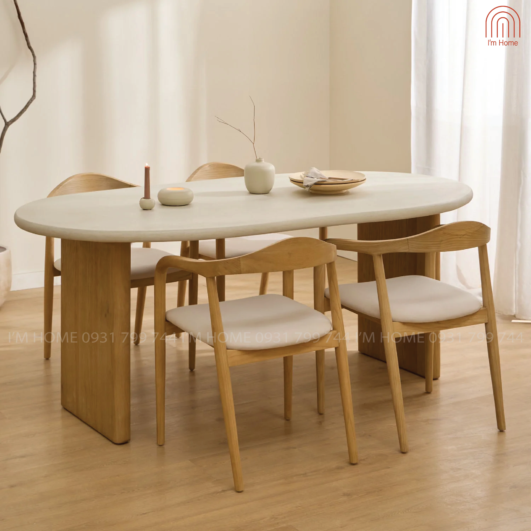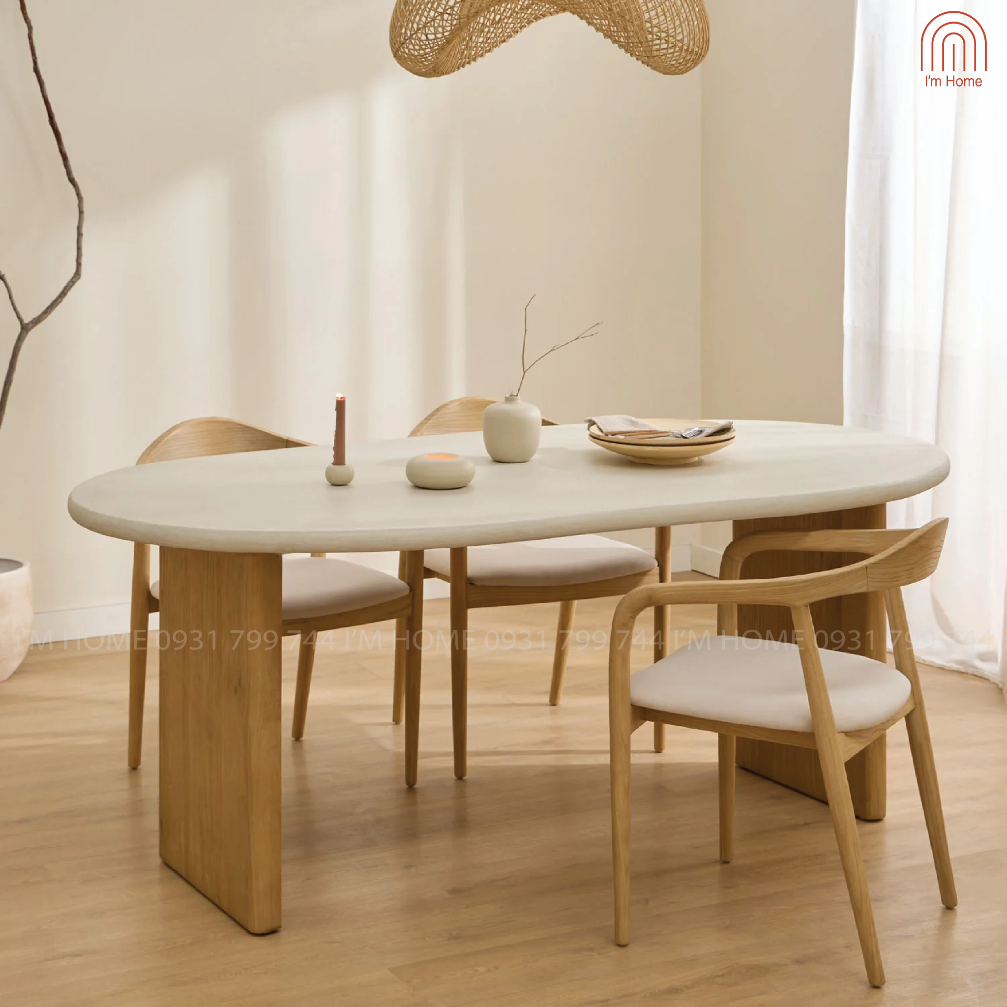 Thiết kế dáng bàn hạt đậu với đường nét bo tròn mềm mại, mang lại cảm giác gần gũi, ấm cúng cho bữa ăn gia đình.