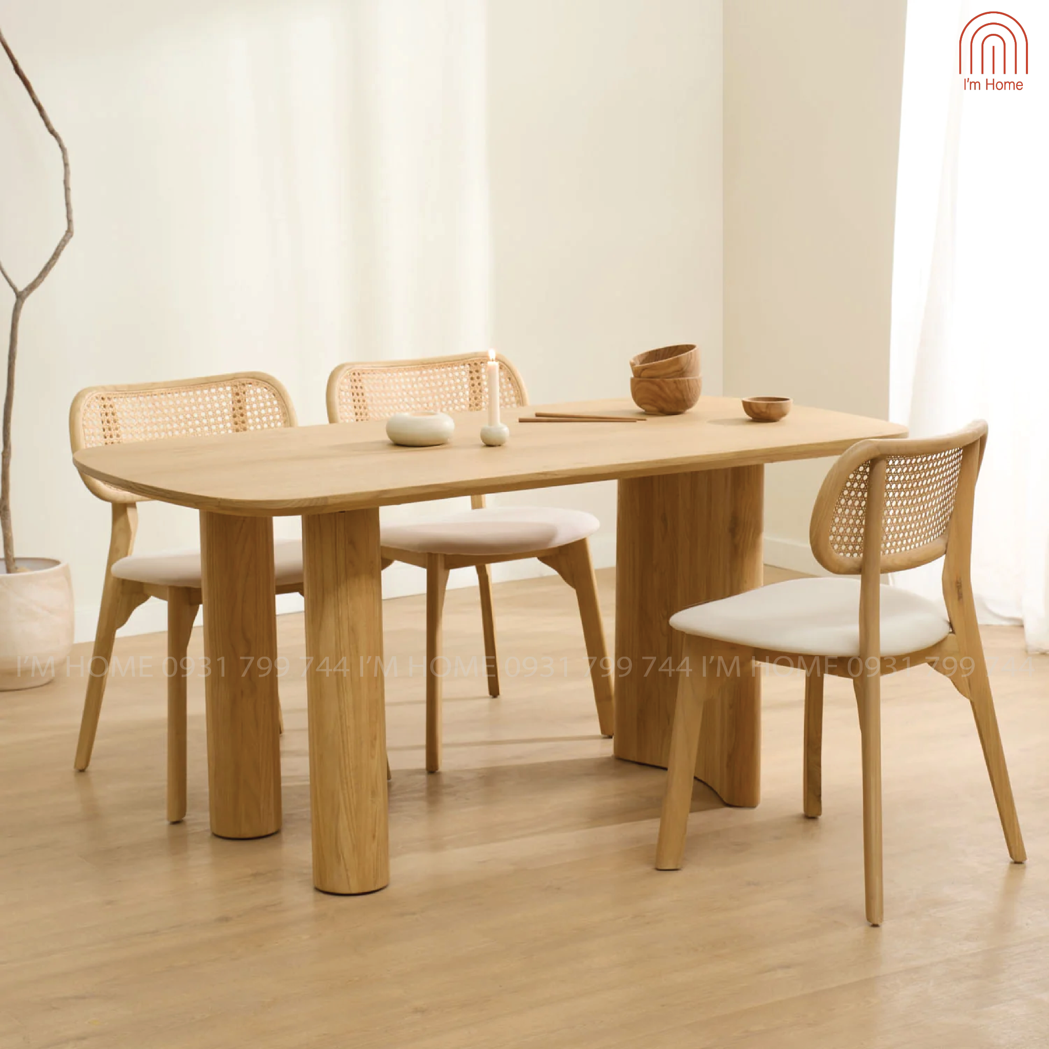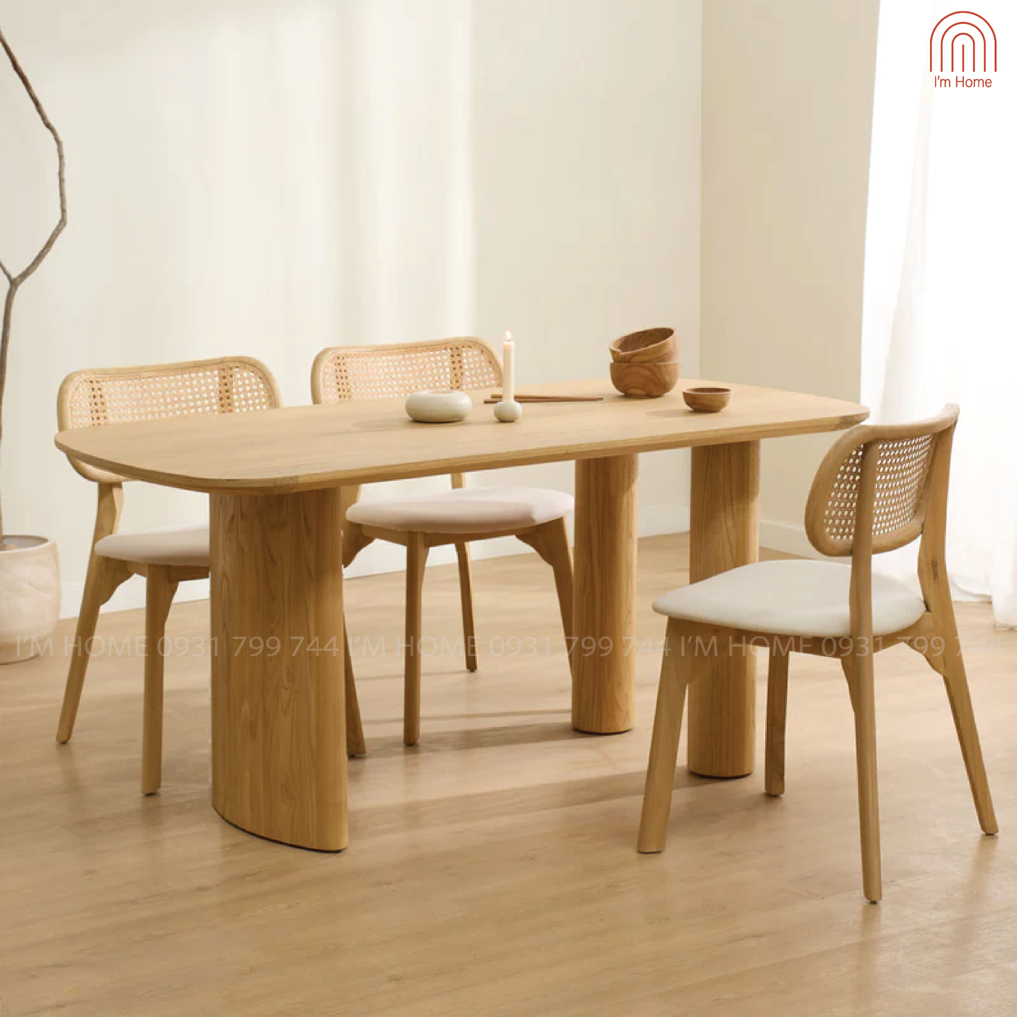 Thiết kế bàn chữ nhật với đường nét bo tròn mềm mại, mang lại cảm giác gần gũi, ấm cúng cho bữa ăn gia đình.