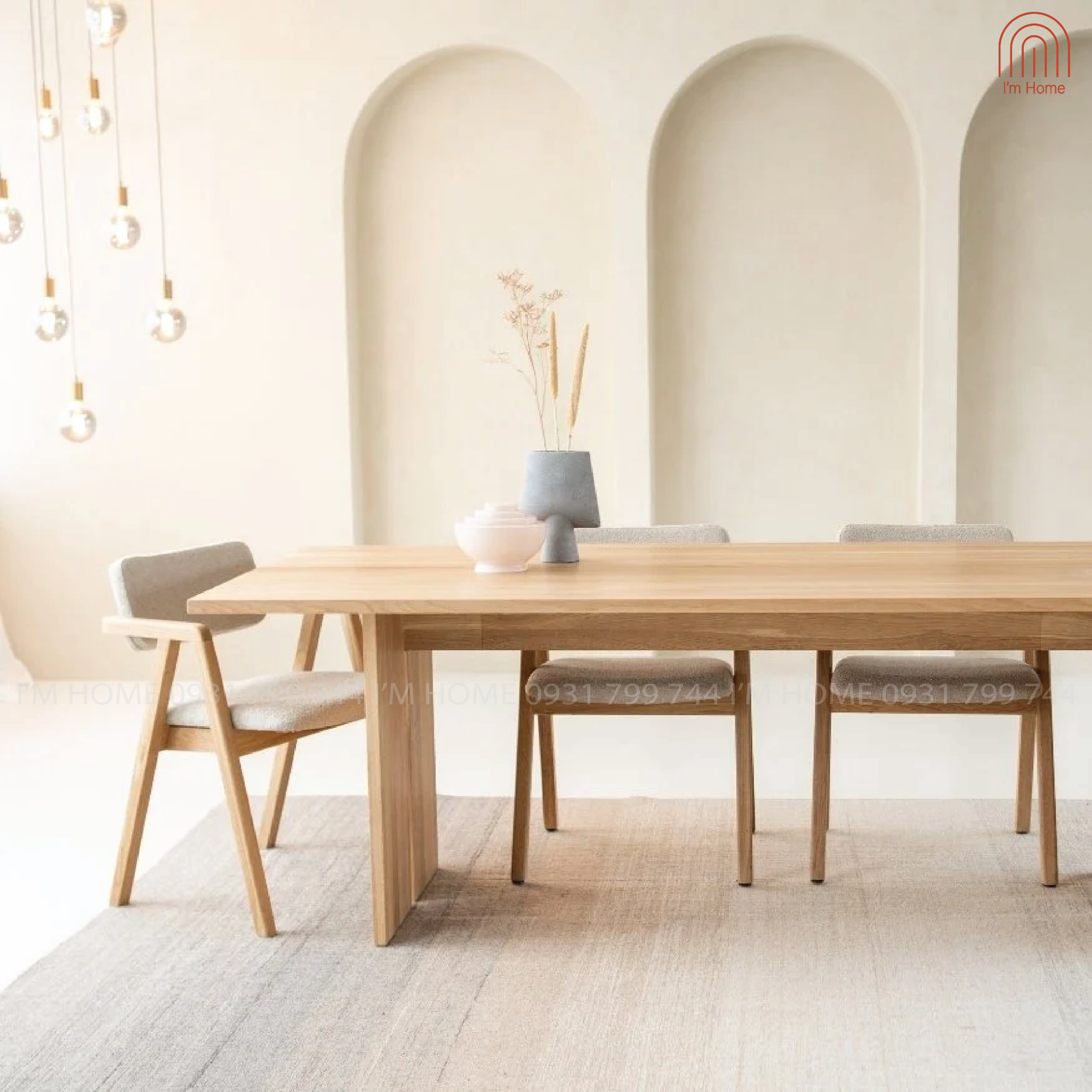 Thiết kế bàn chữ nhật tối giản mang lại cảm giác gần gũi, ấm cúng cho bữa ăn gia đình.