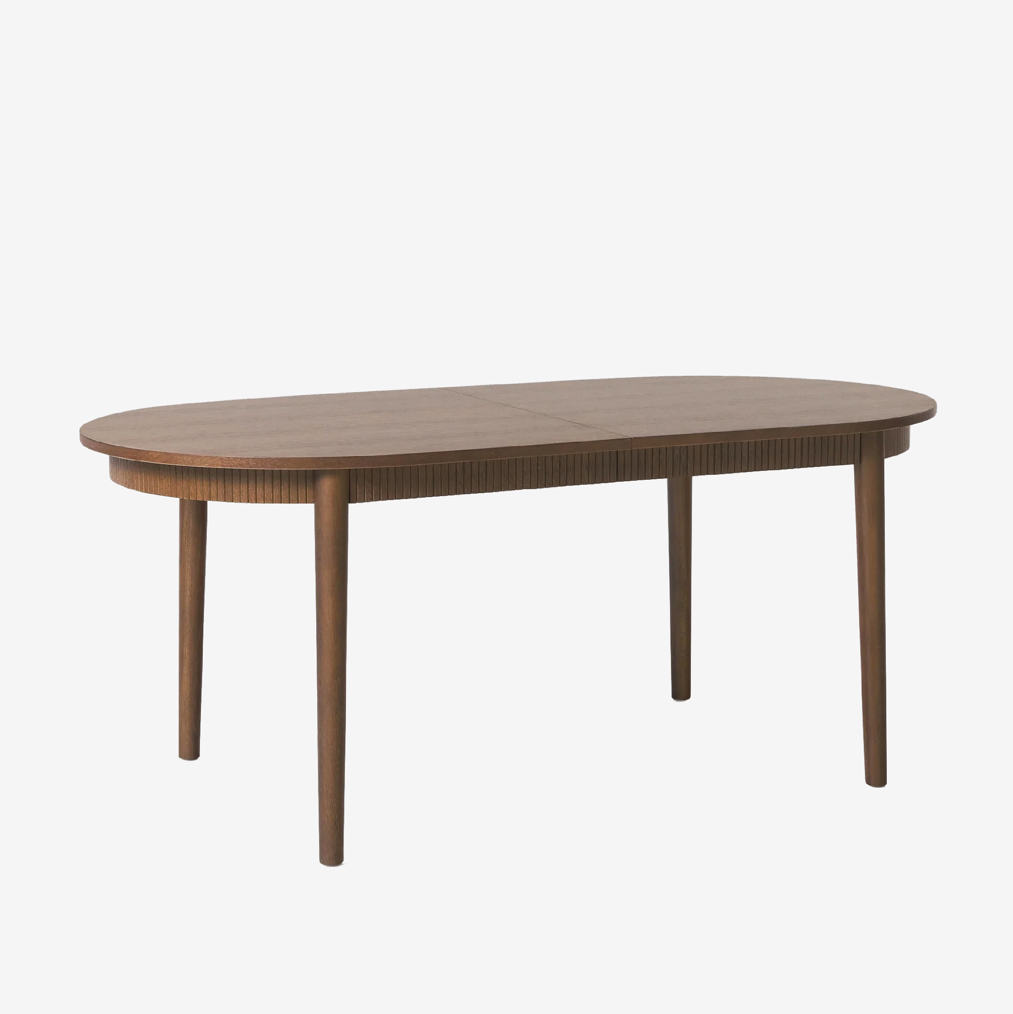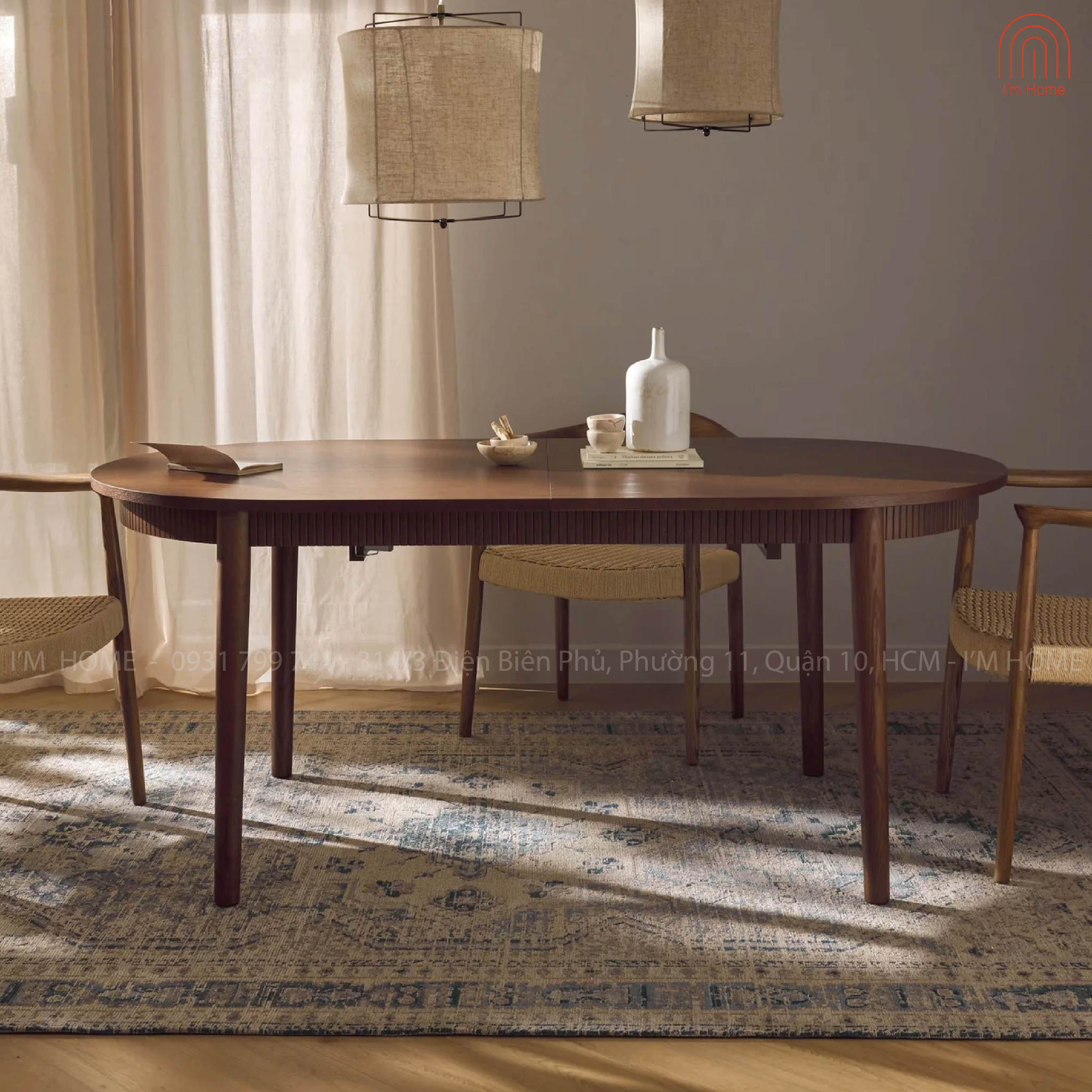 Thiết kế mặt bàn oval bo tròn mềm mại kết hợp cùng chi tiết nẹp gỗ chạy quanh thân bàn, tạo điểm nhấn sang trọng và tinh tế cho không gian sống.