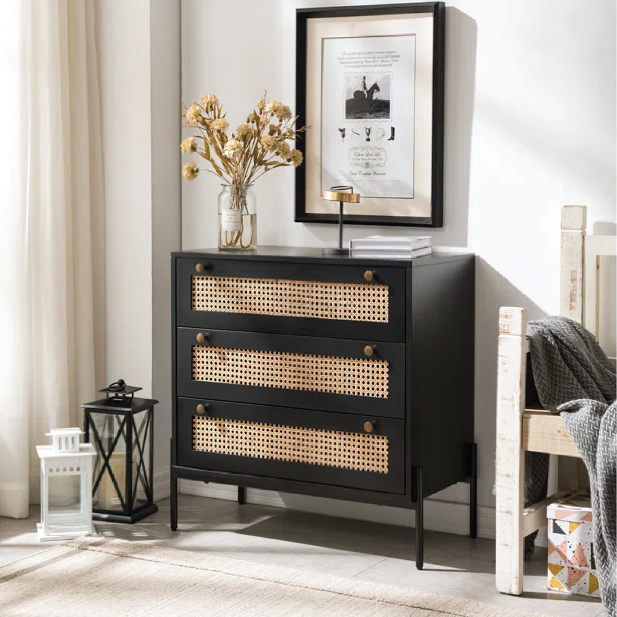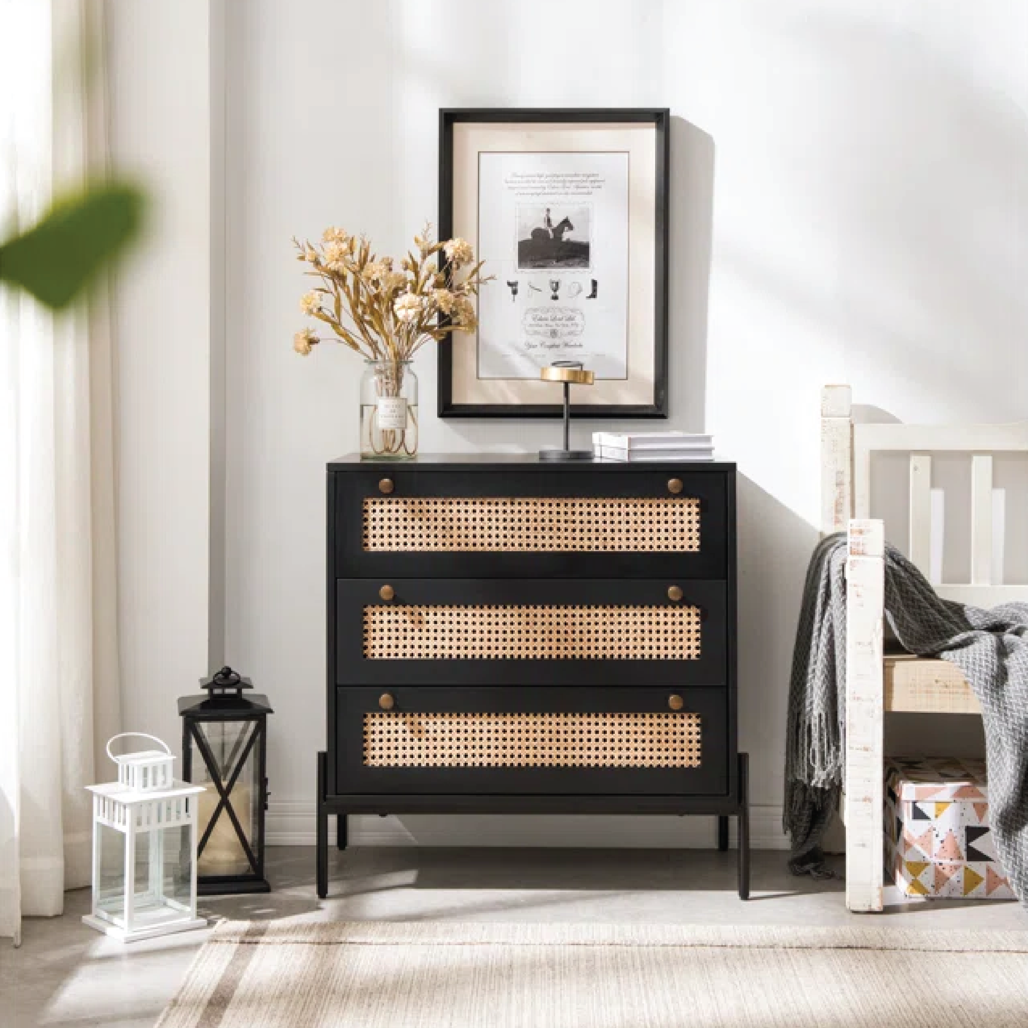 Thiết kế cánh tủ phối mây tự nhiên tinh tế tạo điểm nhấn cho không gian phòng khách