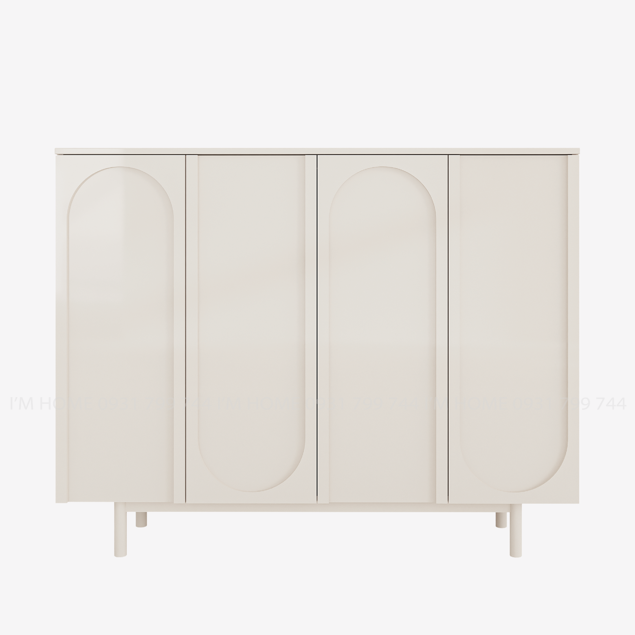 Mang vẻ đẹp hiện đại pha chút thanh lịch, tông kem trang nhã, thanh lịch kết hợp với thiết kế cánh tủ các họa tiết uốn cong hình vòm tinh tế tạo điểm nhấn cho không gian phòng khách.