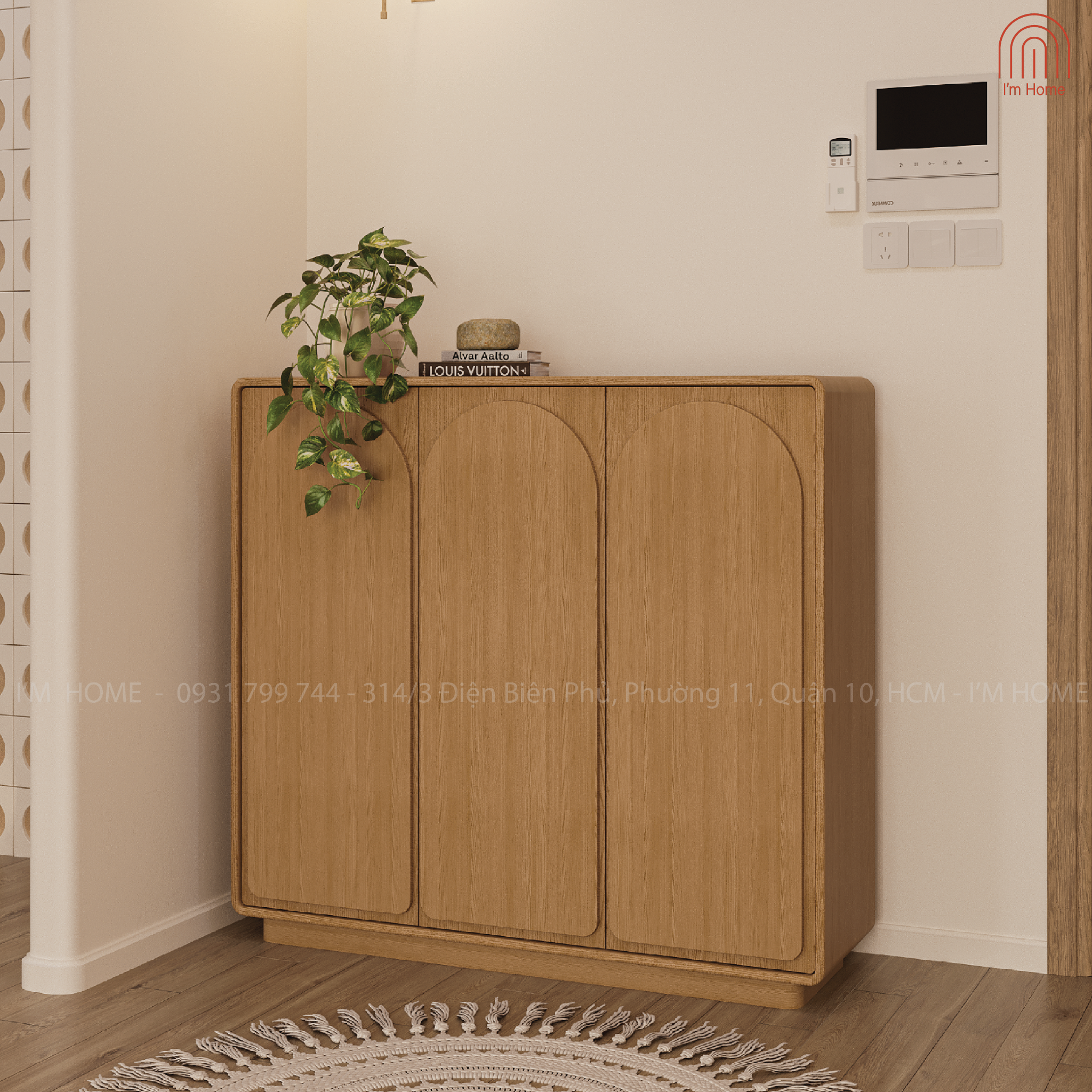 Tủ lưu trữ phong cách hiện đại và tối giản, với các đường nét tinh tế mang lại sự thanh lịch, trang trọng. tông gỗ trung tính ấm áp tự nhiên mộc mạc tạo điểm nhấn nhẹ nhàng nhưng nổi bật không gian nội thất.