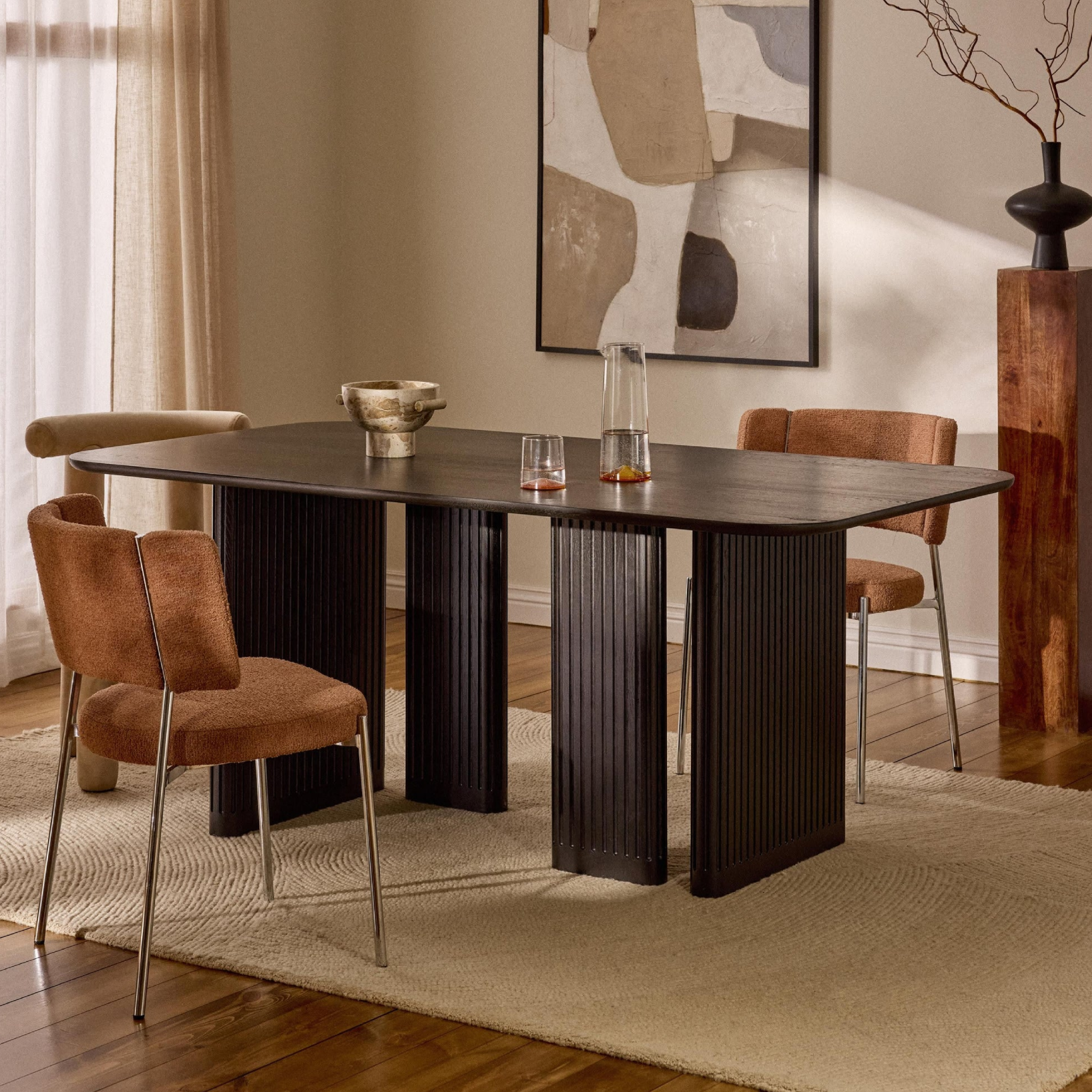 Gam màu trung tính dễ phối hợp với không gian phòng ăn, giúp tạo điểm nhấn tinh tế.