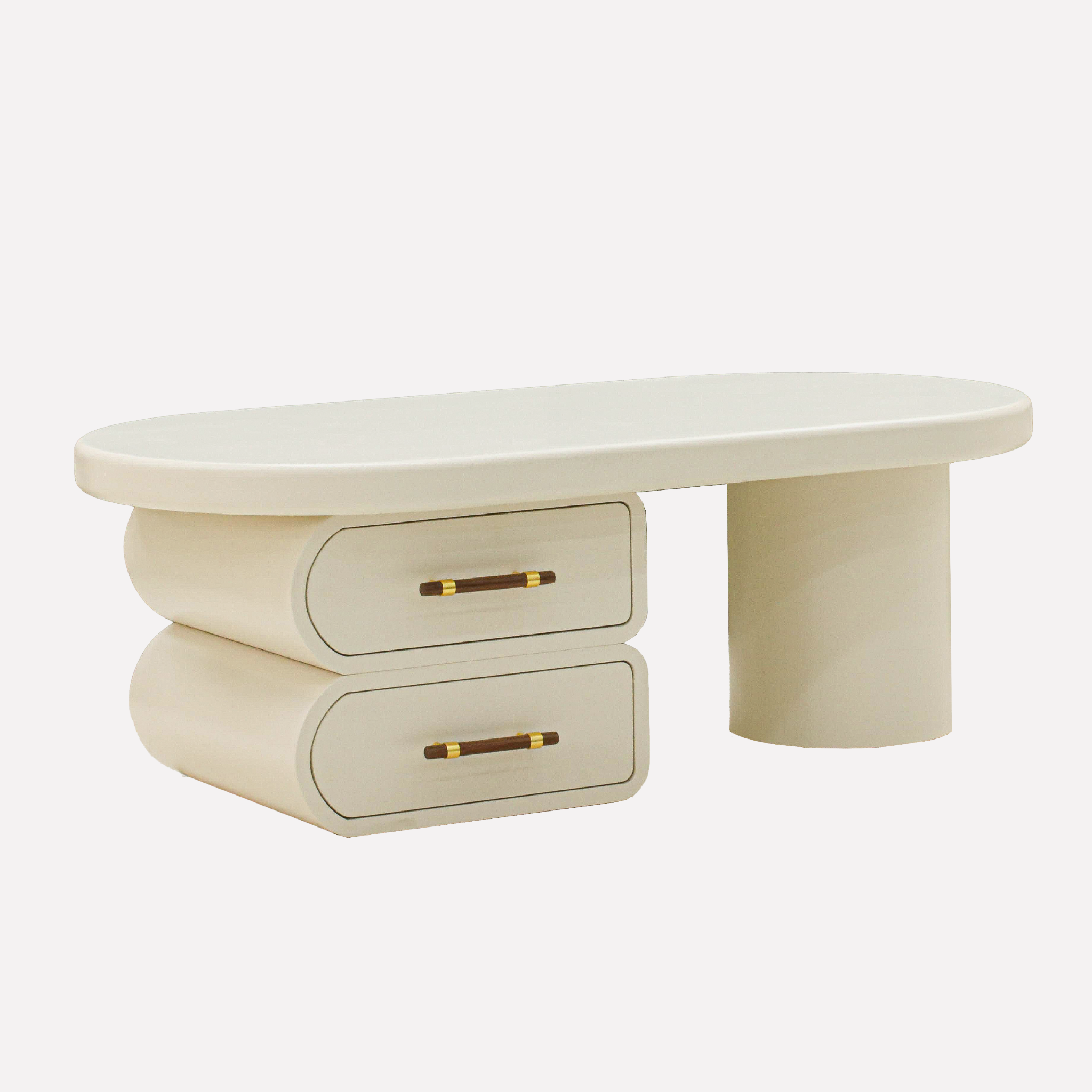 Mặt bàn bo tròn mềm mại kết hợp cùng chân trụ tròn tạo nên tổng thể hài hòa, hiện đại
