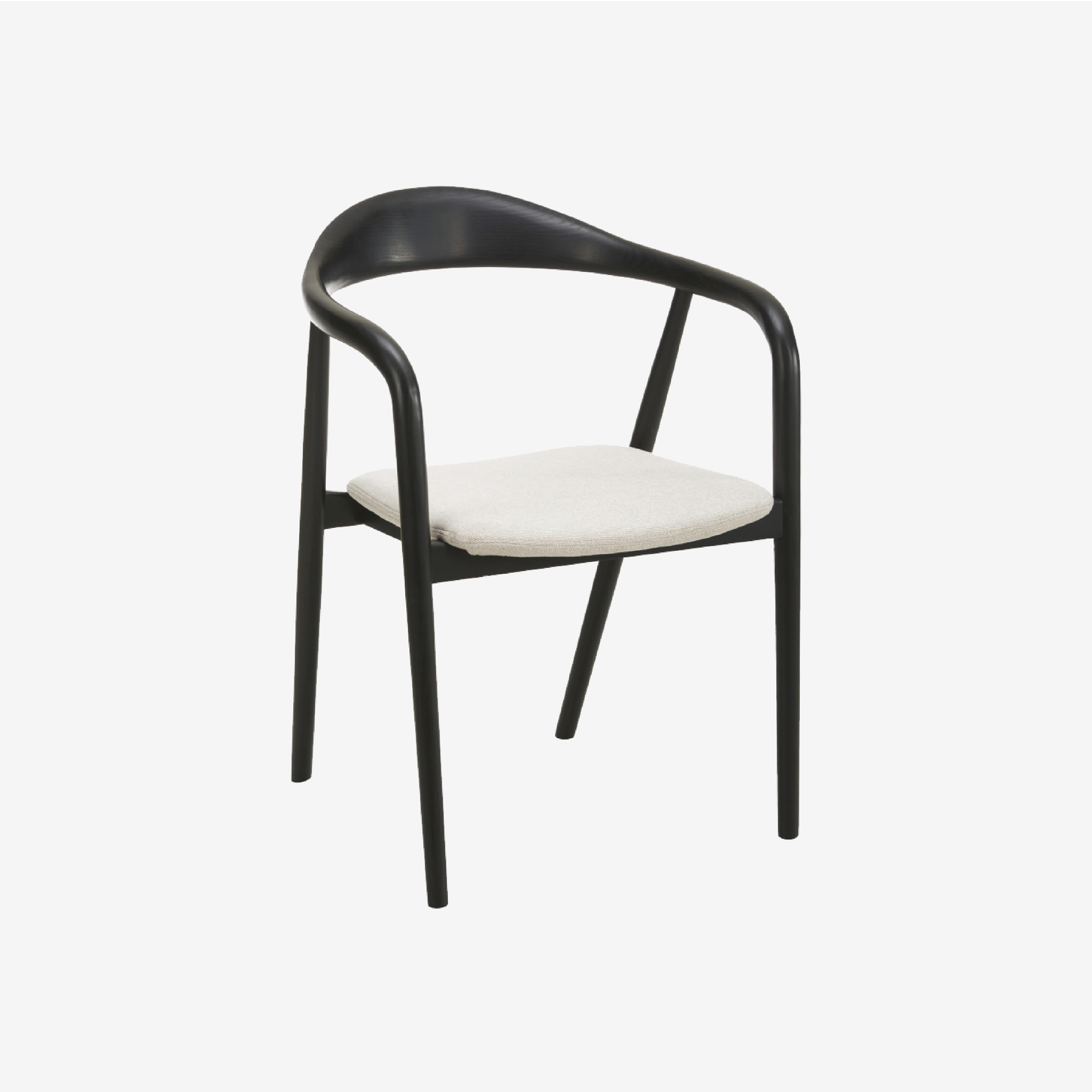 Thiết kế kiểu dáng tối giản, đường cong liền lạc giữa lưng và tay vịn tạo cảm giác ngồi thoải mái, phù hợp vào nhiều không gian nội thất.