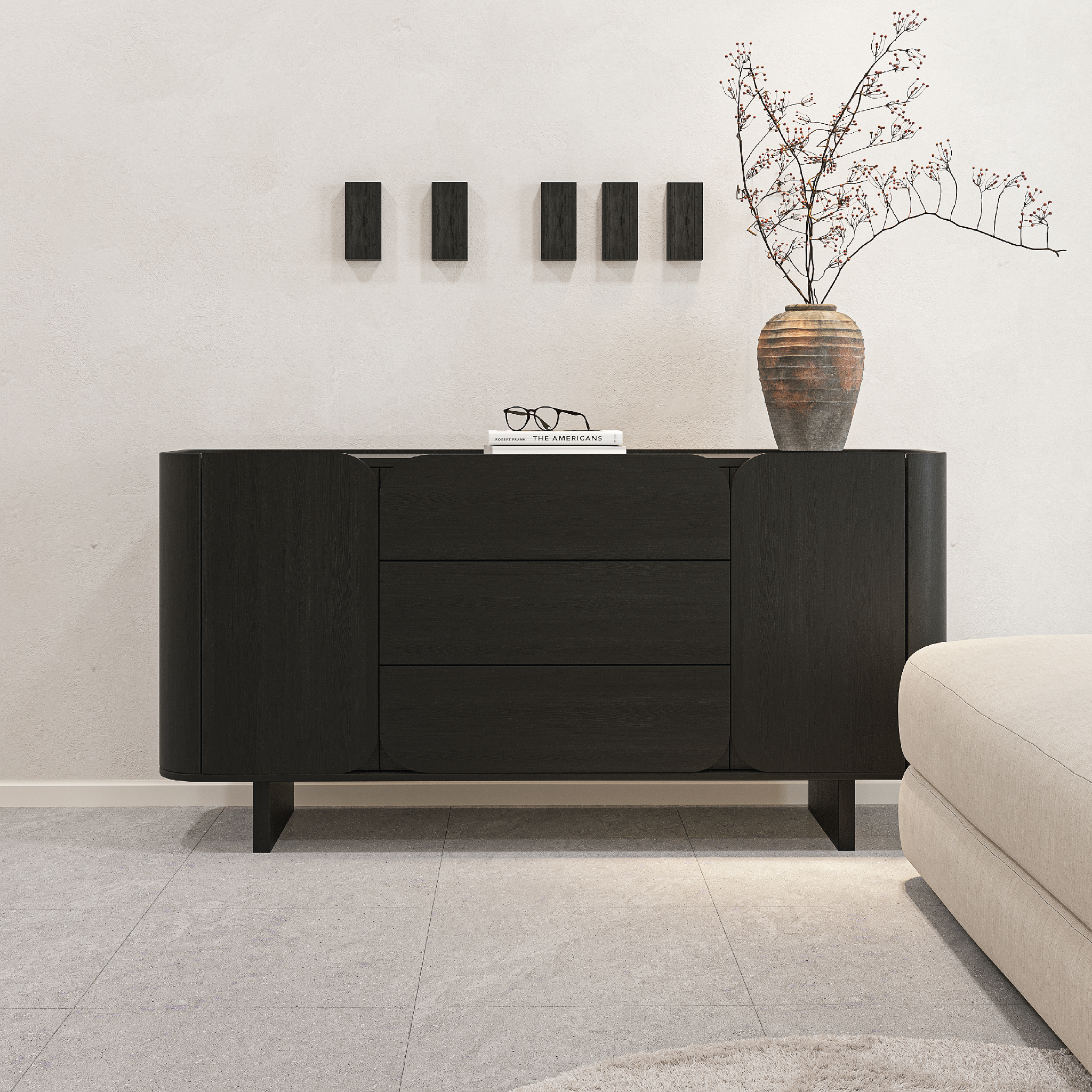Tủ lưu trữ phong cách tối giản pha chút cổ điển, mang lại cảm giác thanh lịch và sang trọng