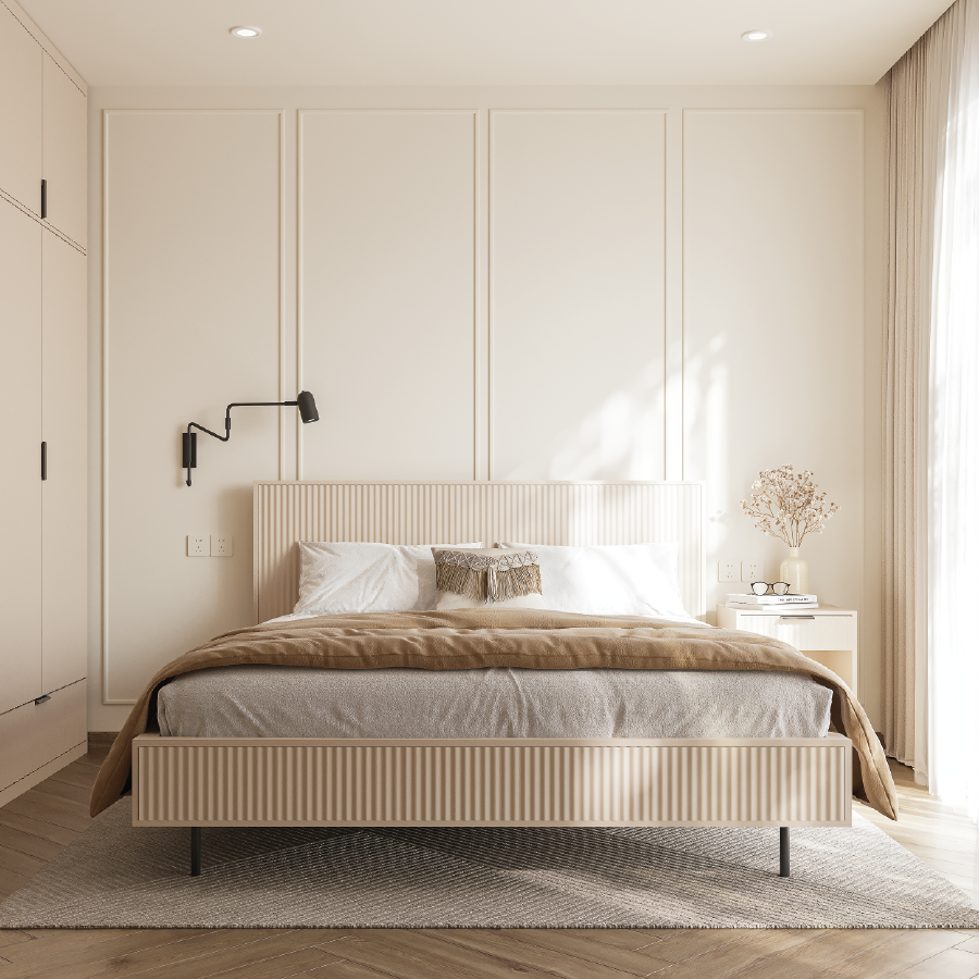 Mang vẻ đẹp hiện đại pha chút thanh lịch, Giường ngủ Ondine với thiết kế ngăn kéo họa tiết CNC gợn sóng nhỏ tạo nên điểm nhấn mềm mại, tinh tế cho không gian sống.