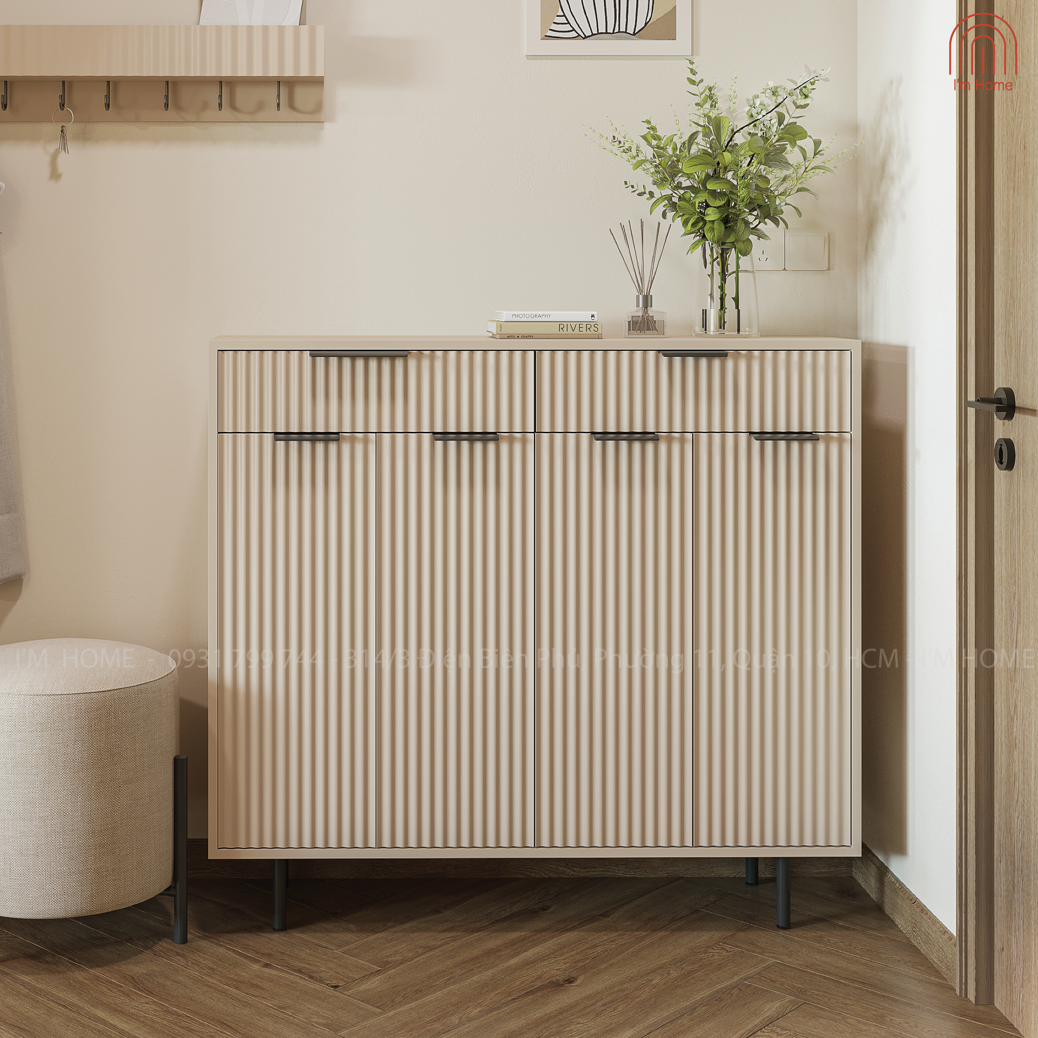 Mang vẻ đẹp hiện đại pha chút thanh lịch, tủ giày Ondine với thiết kế cánh cửa lùa họa tiết CNC gợn sóng nhỏ tạo nên điểm nhấn mềm mại, tinh tế cho không gian sống.