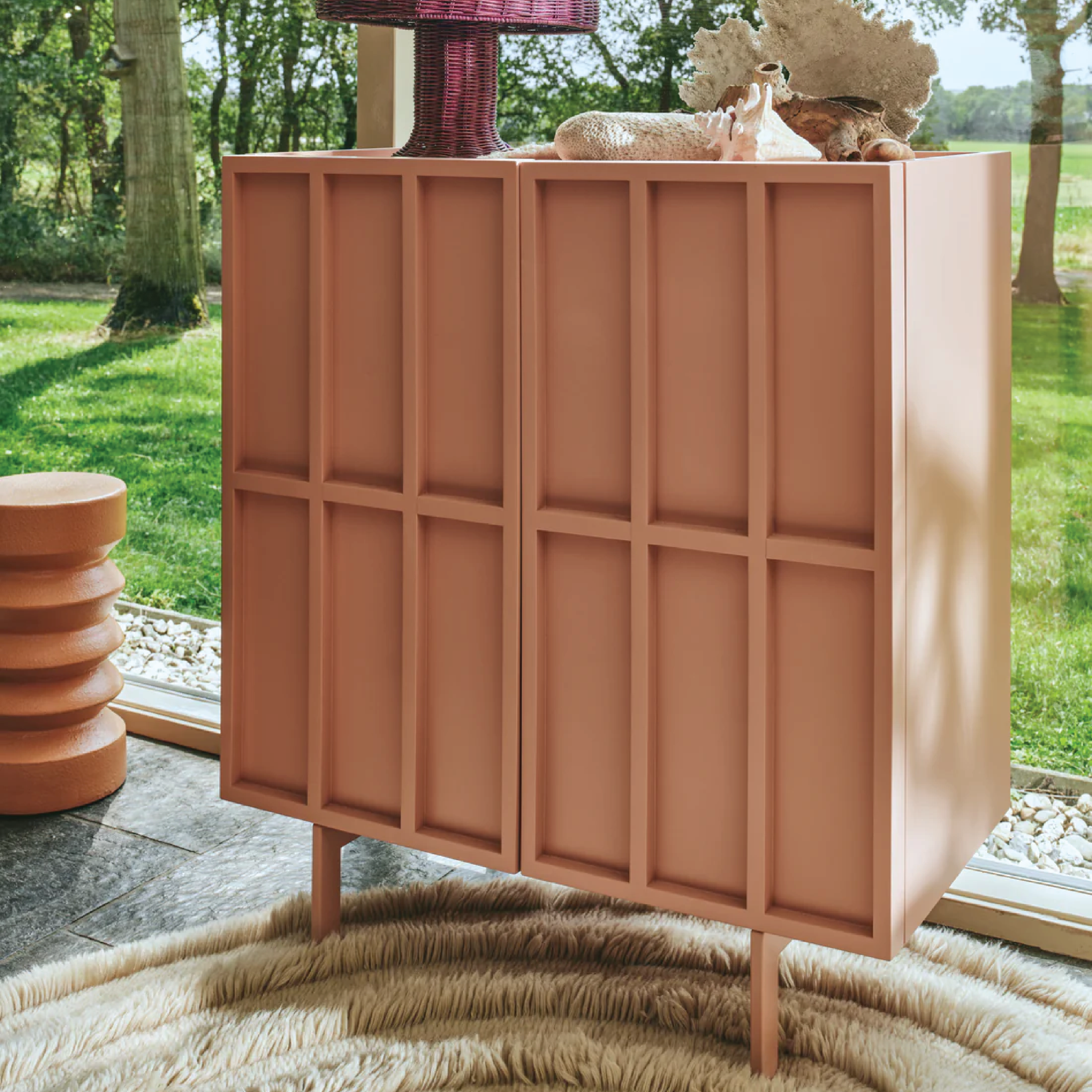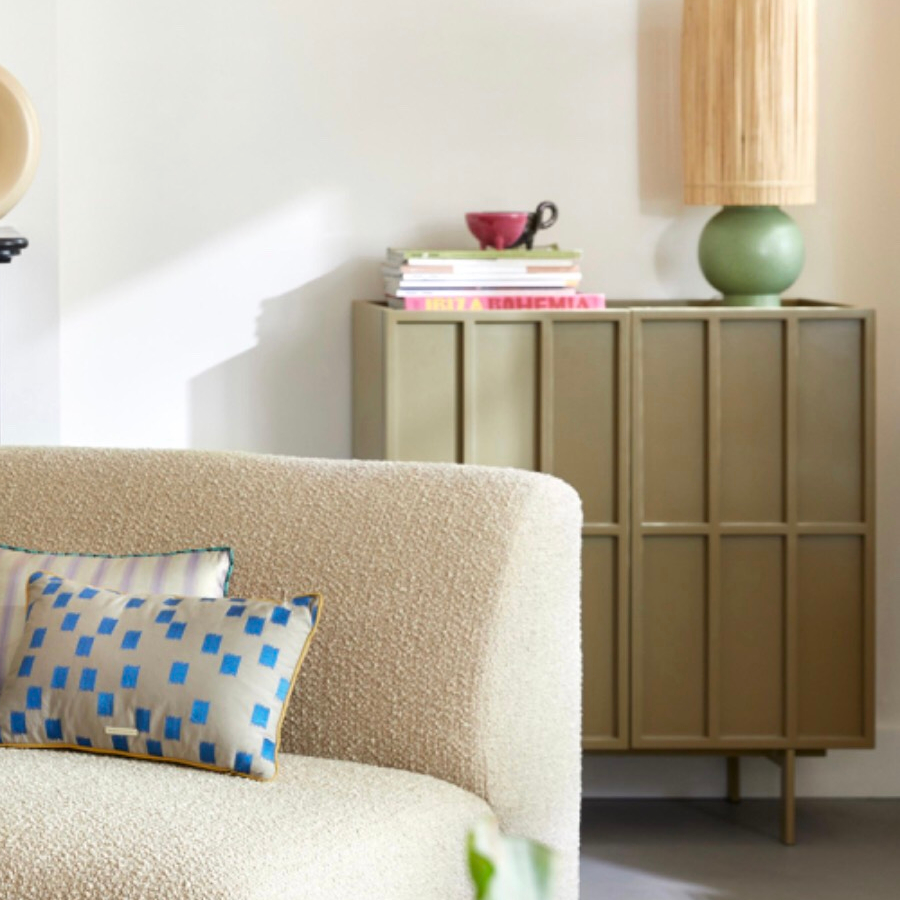 Cánh tủ thiết kế gờ nổi ô vuông độc đáo tạo điểm nhấn cho không gian phòng khách