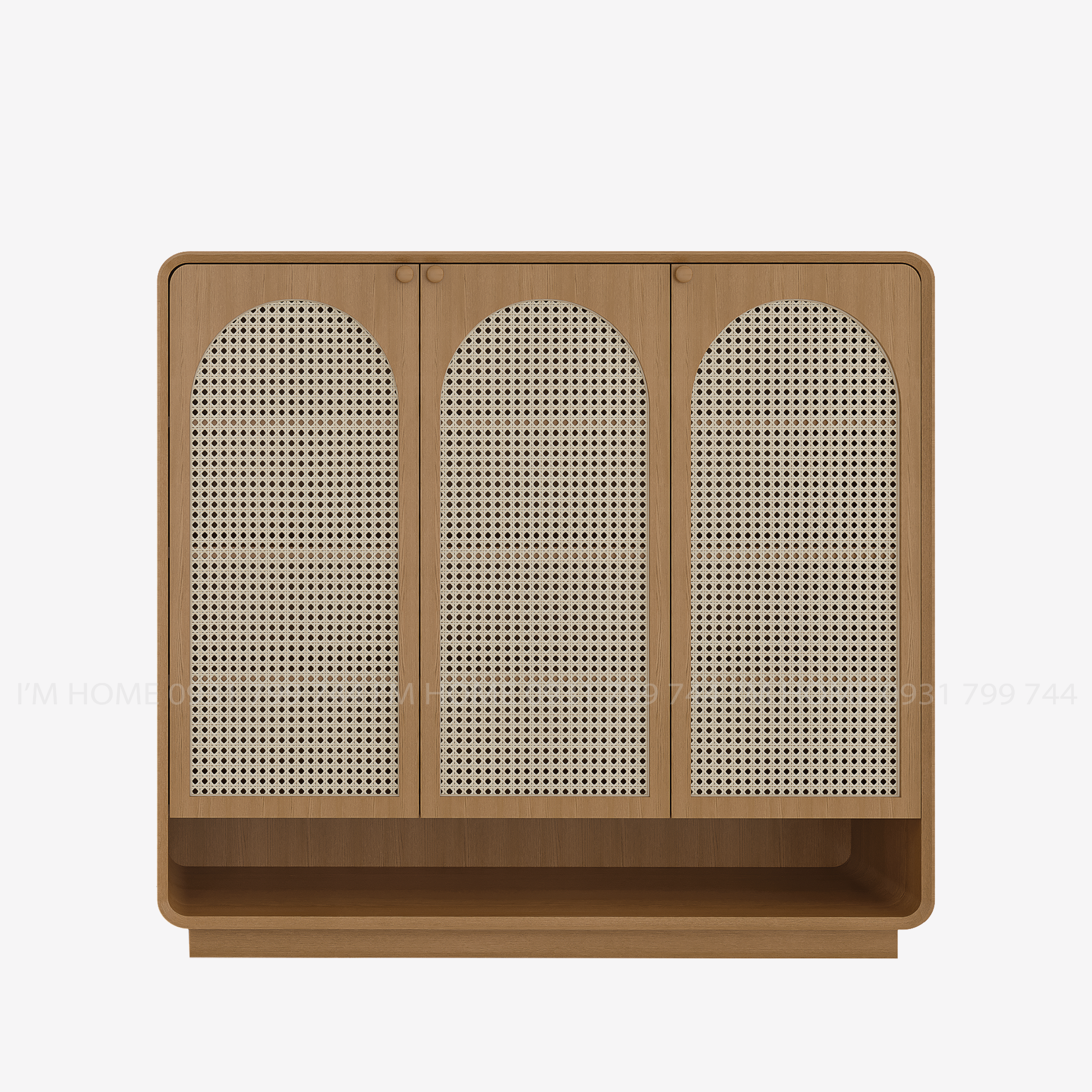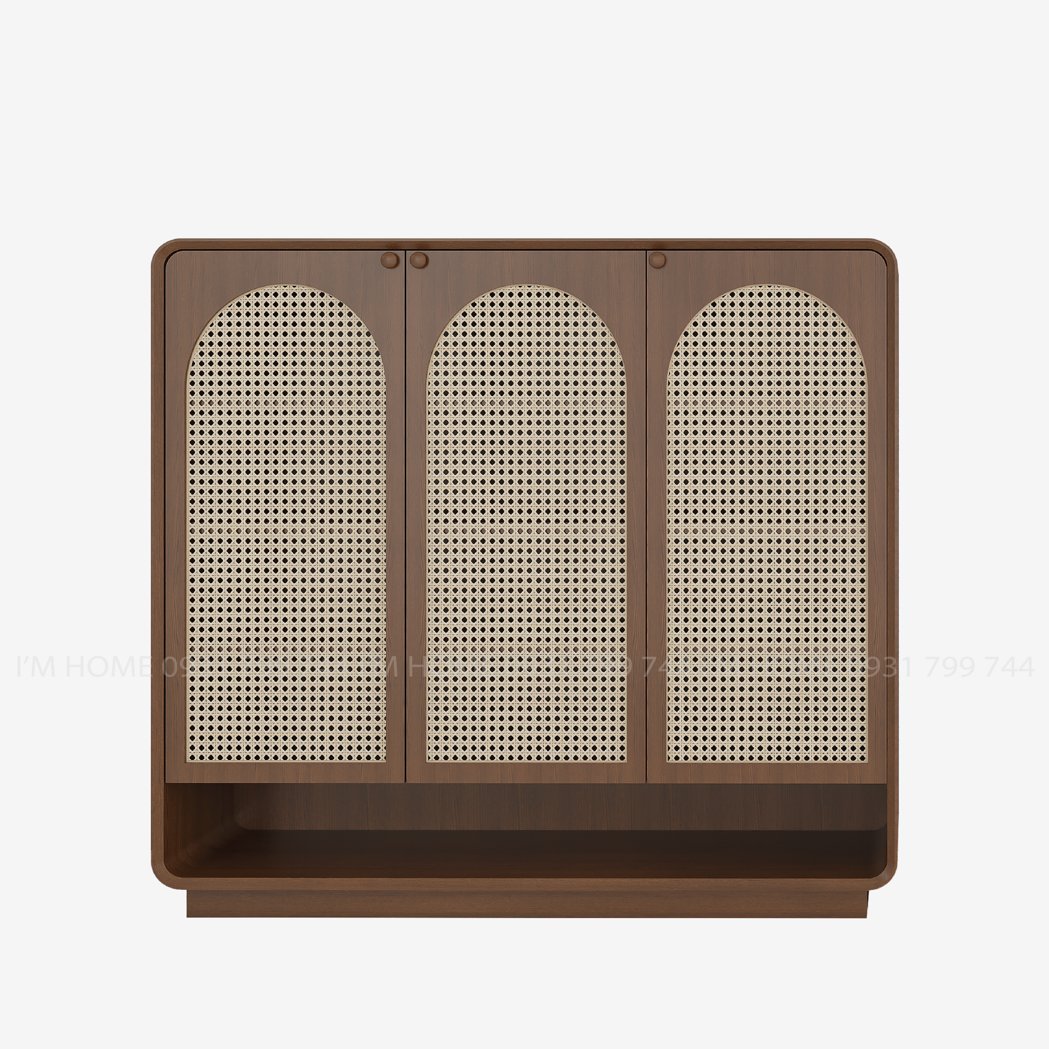 Tủ lưu trữ phong cách tối giản pha chút cổ điển, mang lại cảm giác ấm áp và gần gũi. Tông màu nâu ấm áp nổi bật với các đường vân gỗ tự nhiên. Thiết kế cánh tủ phối mây tự nhiên tinh tế tạo điểm nhấn cho không gian phòng khách