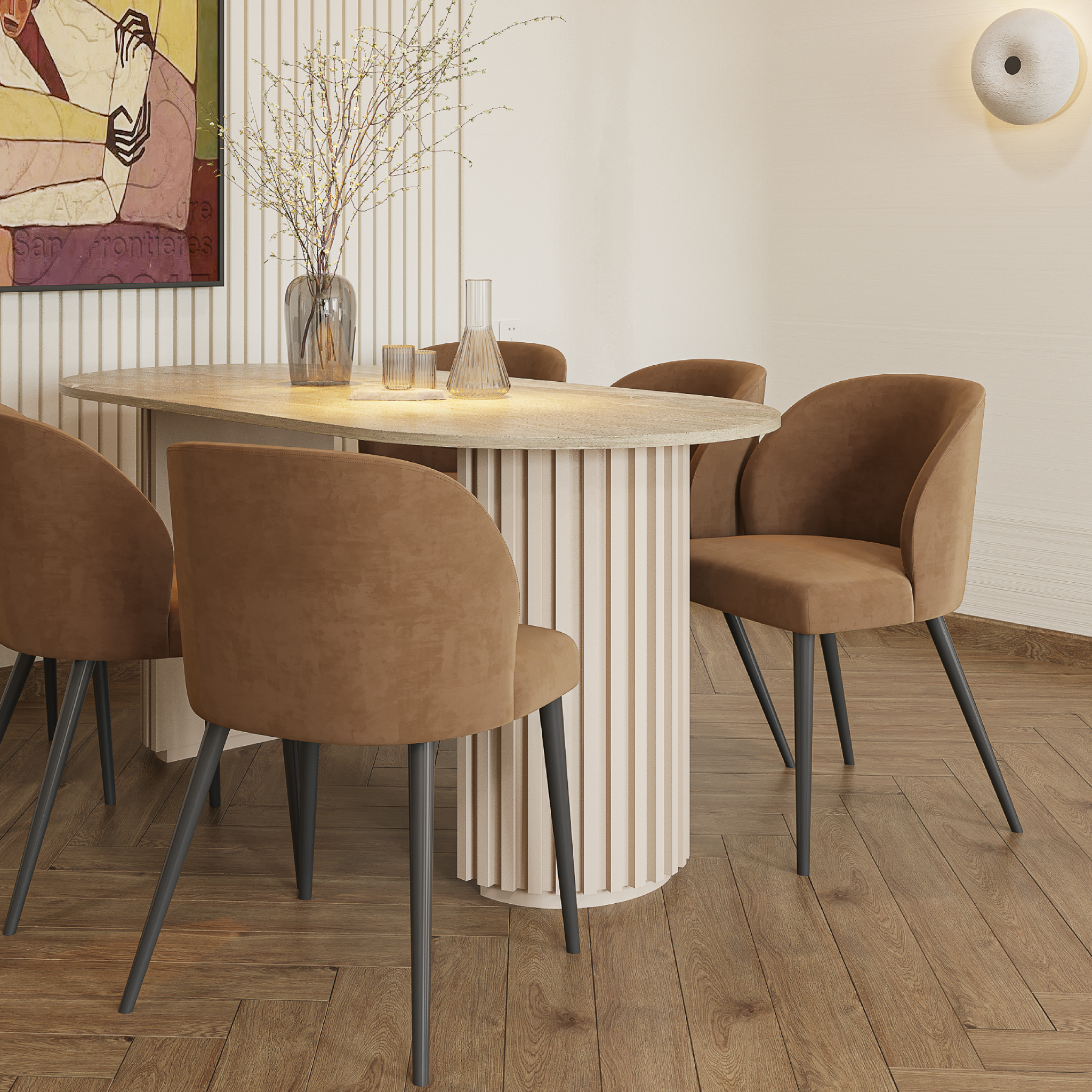 Gam màu trung tính dễ phối hợp với không gian phòng ăn, giúp tạo điểm nhấn tinh tế.