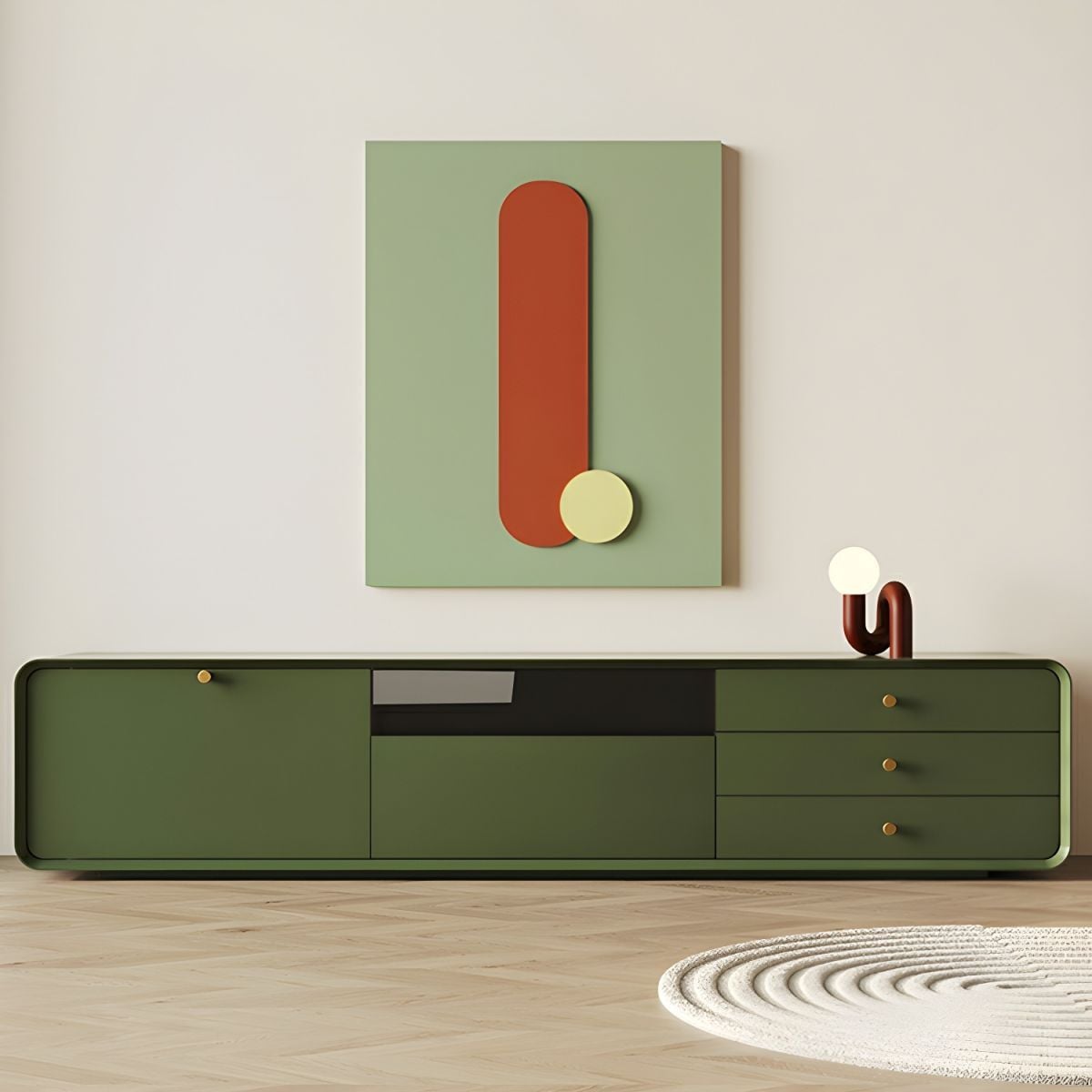 Màu xanh rêu đậm tạo chiều sâu và điểm nhấn nổi bật cho không gian phòng khách