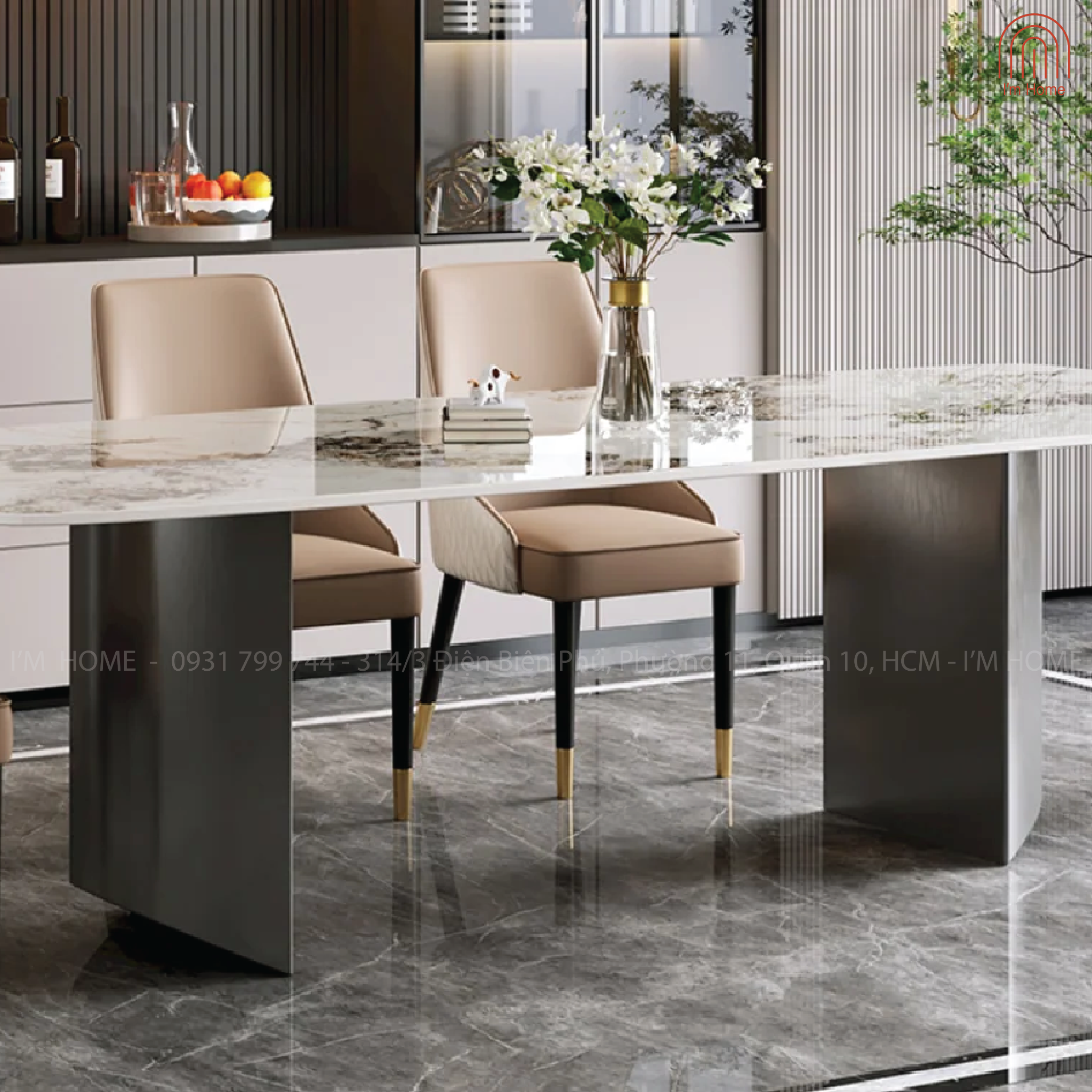 Thiết kế mặt bàn hình chữ nhật mang đến vẻ đẹp hiện đại và tinh tế, dễ phối hợp với nhiều loại ghế ăn khác nhau